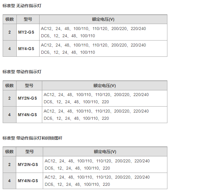 歐姆龍微型繼電器MY2N-GS系列產品種類介紹: